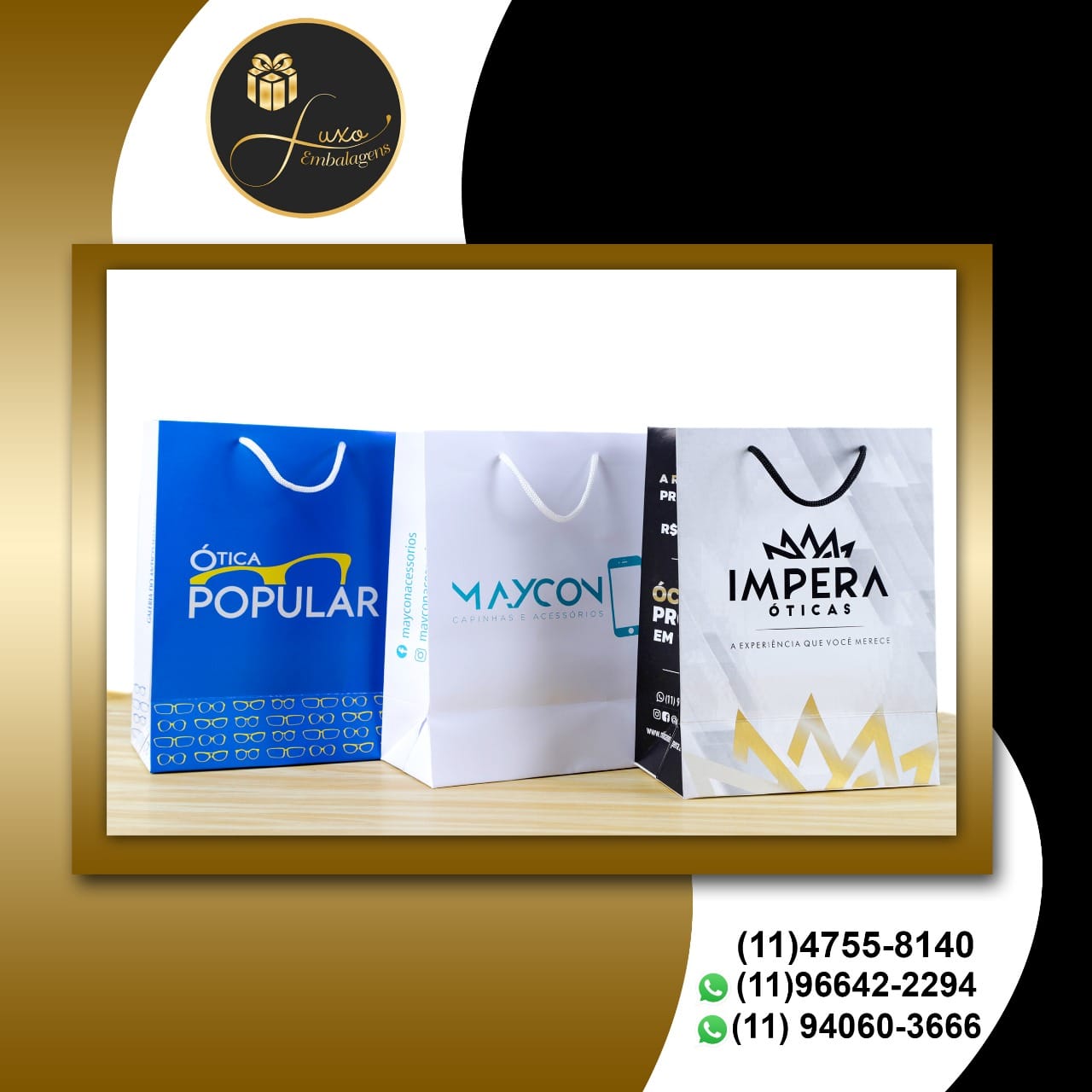 sacolas em papel cartão duplex 225 grs com alça em nylon ponteira e reforço no fundo.